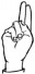 На ћирилици написано ДИНА ШЋЕЛОВИЋ састоји се из 12 слова [?]. Исписано ћириличном једноручном азбуком за глувонеме: